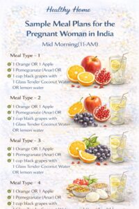 - 1 Orange OR 1 Apple OR 1 Pomegranate (Anar) OR 1 cup black grapes with 1 Glass Tender Coconut Water OR lemon water