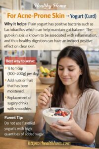 | Acne Support | Yogurt | Gut balance & calcium | 4–5x weekly |