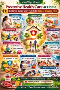 Discover 11 evidence-based preventive health care at home. Learn daily habits to boost immunity, improve wellness & prevent chronic disease naturally.