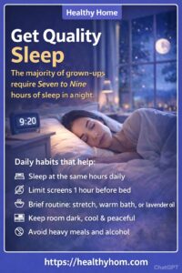 | Avoid heavy meals late | Eat dinner 2–3 hours before sleep |