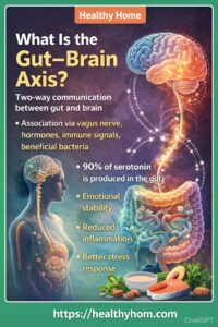 The gut brain axis connects the gut and the brain. A gut microbiome maintains a healthy mood, thoughts and its emotional balance. Foods with Nutrient rich acts like a natural medicine.
